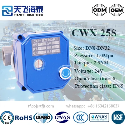 Tianfei High-tech’s CWX-25S is a mini electric ball valve equipped with manual control function. This valve boasts stable and reliable performance and employs a PCM and metal gear design.